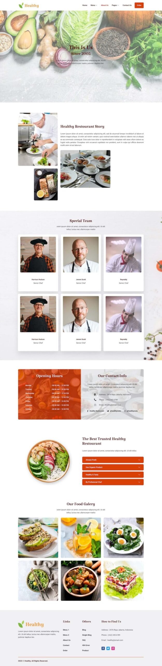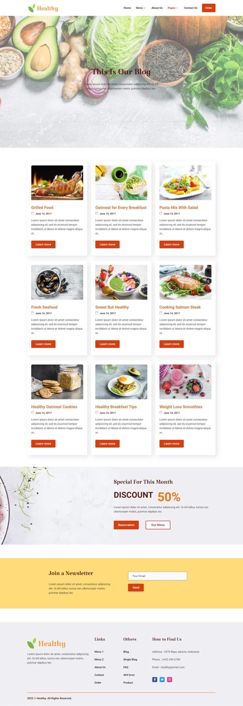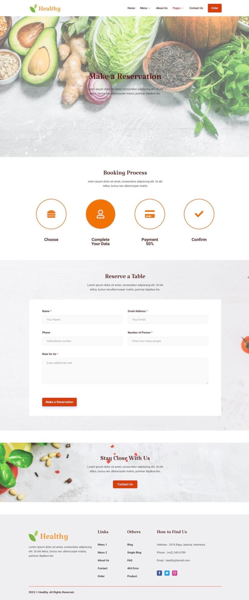 A fresh and modern design created for health-focused restaurants and cafes. This template highlights nutritious menus, special healthy dishes, customer testimonials, and an easy reservation system. Perfect for promoting a lifestyle of wellness and attracting health-conscious diners.