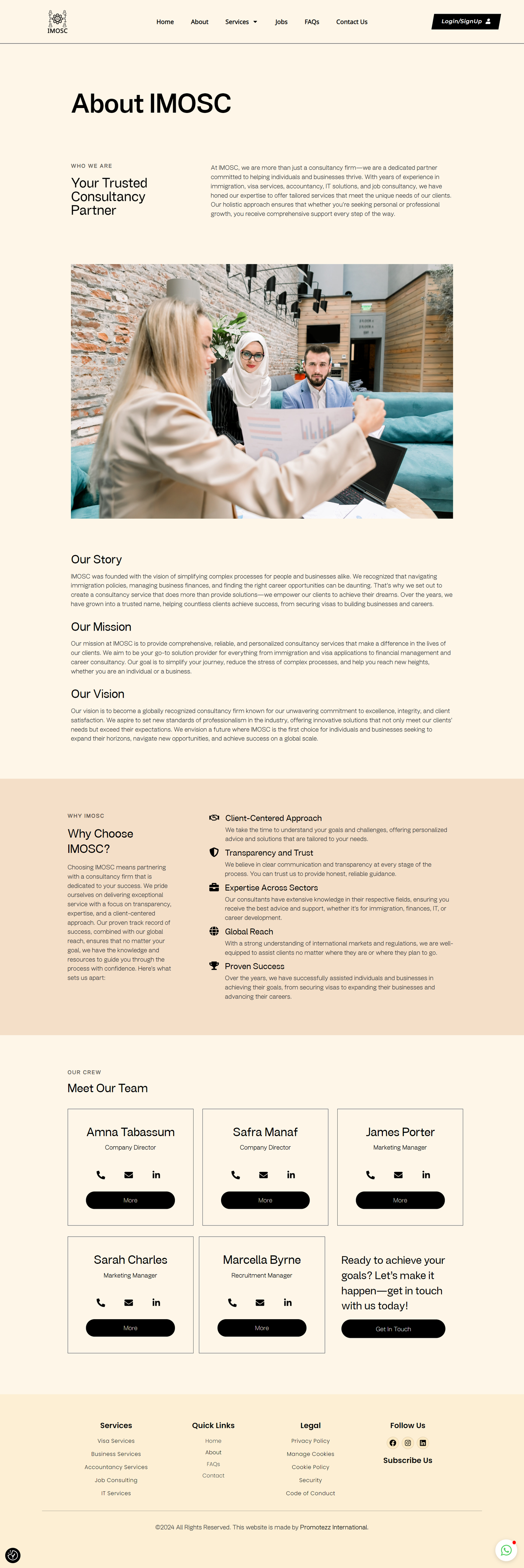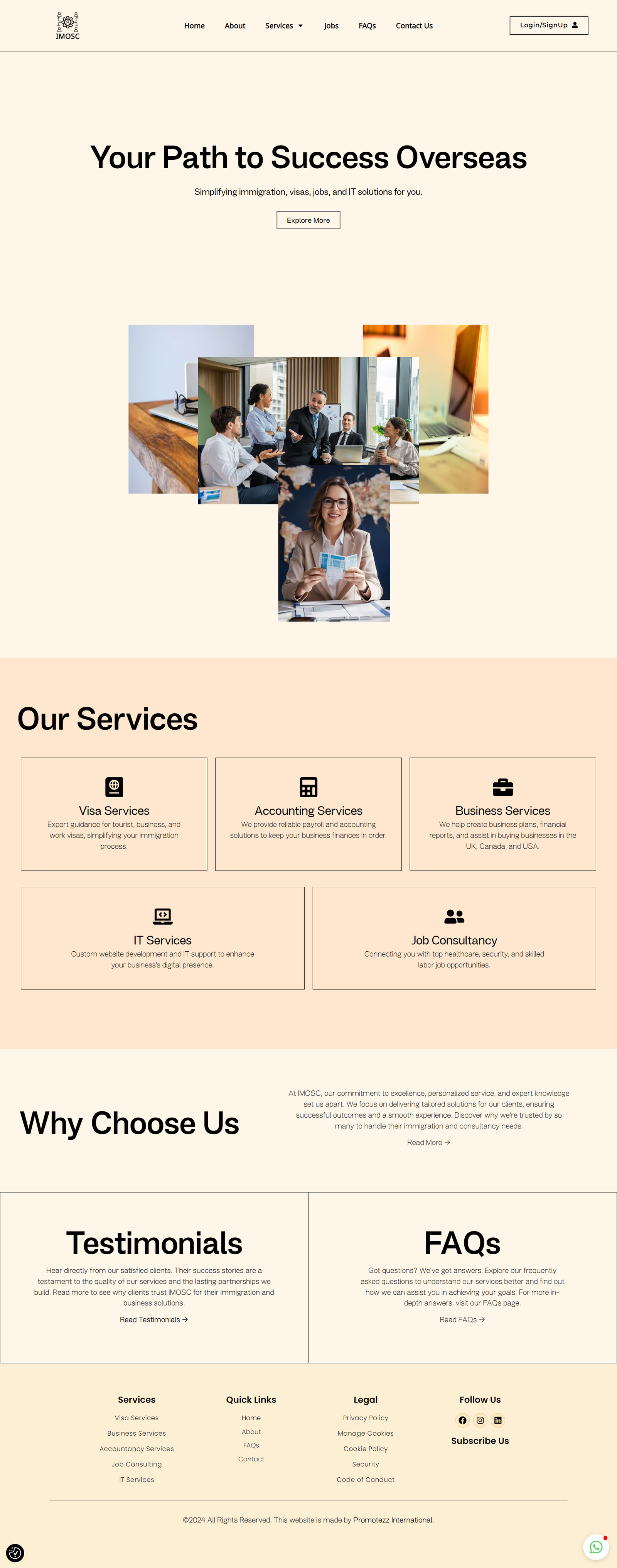 I designed a professional and clean website for IMOSC, a US-based immigration and visa consultancy firm. The website features a user-friendly design and a dedicated job posting section to connect clients with employment opportunities.
