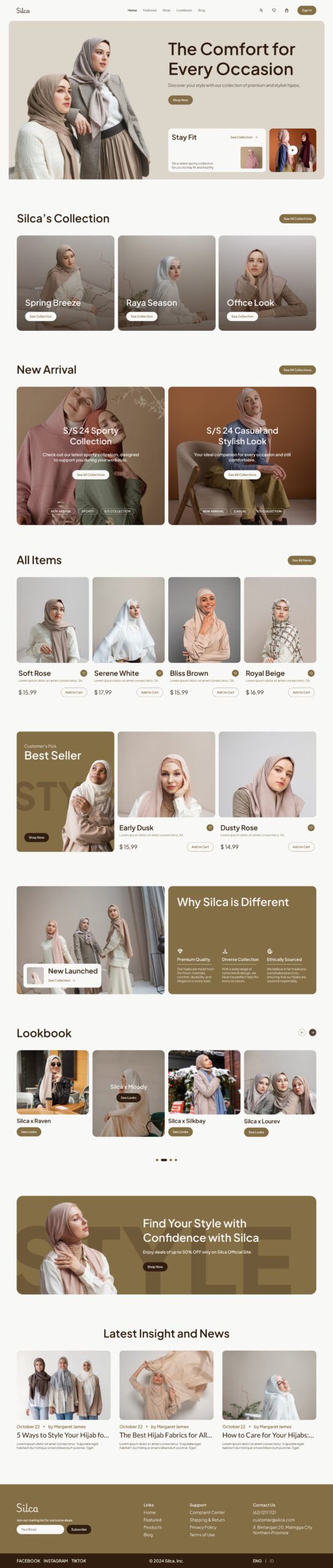 I designed a sample Figma template for an online hijab store, focusing on creating a clean, modern, and user-friendly layout. The template features intuitive navigation, elegant typography, and an organized structure, all aimed at showcasing fashion products effectively.