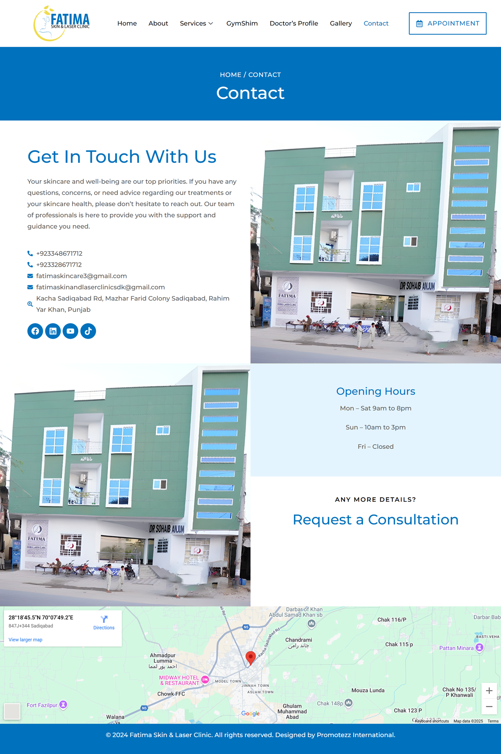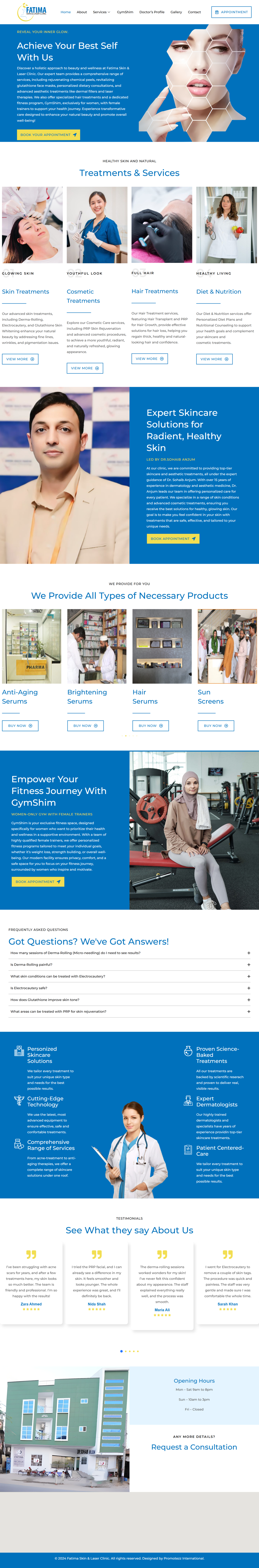I designed a professional website for Fatima Skin & Laser Clinic, showcasing their advanced dermatology and aesthetic treatments. The client required a clean, modern, and user-friendly design that aligns with their brand identity and highlights their services effectively.